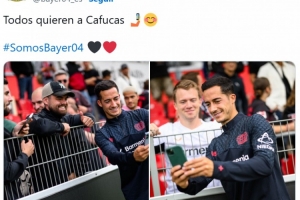 勒沃库森的西语官推也在赛后晒出了巴斯克斯和球迷们的自拍合影并表示:“大家都喜欢‘卡福克斯’。”