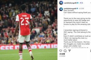 体育资讯9月5日讯 25岁的比利时中场洛孔加已经官宣加盟汉堡,他也在今日通过社媒发文告别阿森纳: