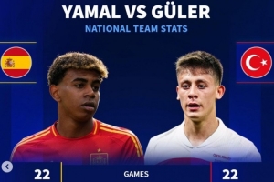 体育资讯9月8日讯 土耳其即将迎战西班牙,两队的年轻核心恰好来自皇马和巴萨。《转会市场》也对比了两人的国家队关键数据。