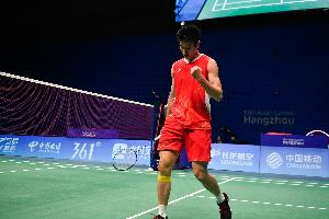两盘比赛的比分是:21-18、21-19。决赛对手将是中国台北选手周天成和印度选手拉克什亚间的胜者。