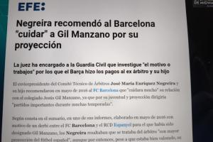 根据案卷记录,在2016年5月针对希尔-曼萨诺执法的巴萨对阵西班牙人德比战所撰写的报告中,内格雷拉父子强调该裁判是“西班牙足球界最具发展潜力的裁判”,尽管当时其虽获良好评价,但执法水平“仅属良好”。