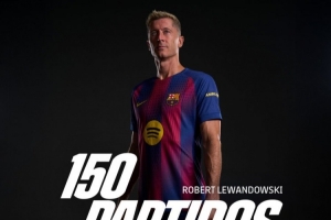 体育资讯9月15日讯 37岁的莱万迎来了巴萨生涯150场里程碑,巴萨官方发海报为他庆祝。