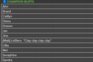 阿狸、布兰德、凯特琳、黛安娜、德莱文、贾克斯、金克丝、乐芙兰、莉莉娅、梅尔、萨勒芬妮、辛德拉