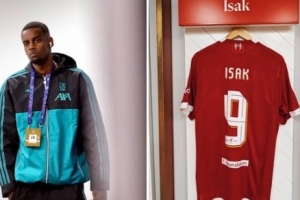 利物浦官方晒出伊萨克伊萨克神情严肃的照片,同时也晒出了瑞典前锋在更衣室里的球衣照片对本场比赛进行预热。