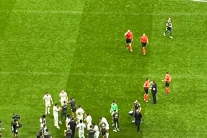据皇马跟队记者Mario Cortegana报道,在比赛中补水休息时间,维尼修斯表现得十分专注,主帅阿隆索也将维尼修斯与姆巴佩召集在一起进行战术指导。