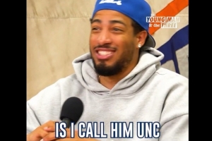 主持人在引导问题的时候,另外一位嘉宾斯派克-李插话到:“库里多少岁了?”哈利伯顿笑着说:“我不知道,我只知道我叫他叔叔(uncle),我不知道他多少岁。他可能36、35还是37?”