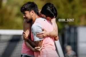 体育资讯9月26日讯 效力洛杉矶FC的华裔球员伍小海更新社媒,晒出自己在训练中和队友孙兴慜的拥抱照。