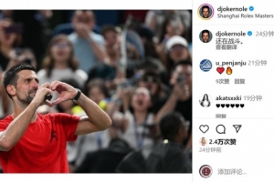德约科维奇社媒晒出比心的照片,庆祝胜利,并用中文写道:“还在战斗。”