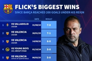 德转列弗里克执教巴萨以来最大胜利排名: